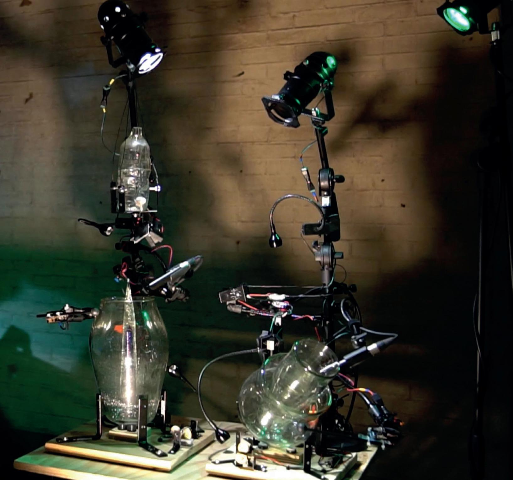 Het water drupte uit één van de glazen sculpturen (gemaakt door Frederik Rombach) en stuurde zo een kettingreactie aan waarin Pierre licht en geluid liet samenkomen tot een filmisch, meeslepend audiovisueel spel