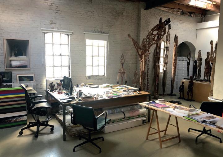 hangen. Het is nu, zoals hij zei een object in de ‘white cube’ van de kunst. “Zou dit T-shirt ook een massa product kunnen worden?” Daarop vertelde Roy dat hij ooit een kleine serie heeft gemaakt van het shirt voor een tentoonstelling maar niet meer dan dat. In het vervolg van het gesprek kwam onder andere het verzamelen aan de orde. Beide kunstenaars hebben een grote liefde in het verzamelen van objecten. Bij Simon is dat zeker een deel van zijn werk. Vaak worden de objecten in zijn uiteindelijke beelden verwerkt. Bij Roy ligt het verzamelen over een grote breedte meer op de achtergrond. Roy vertelde hoe hij als puber gefascineerd was door de tweede wereldoorlog. In zijn jeugd heeft hij veel spullen uit die tijd verzameld. Het verzamelen is zeker voor een deel de bron van waaruit hij denkt en werkt.