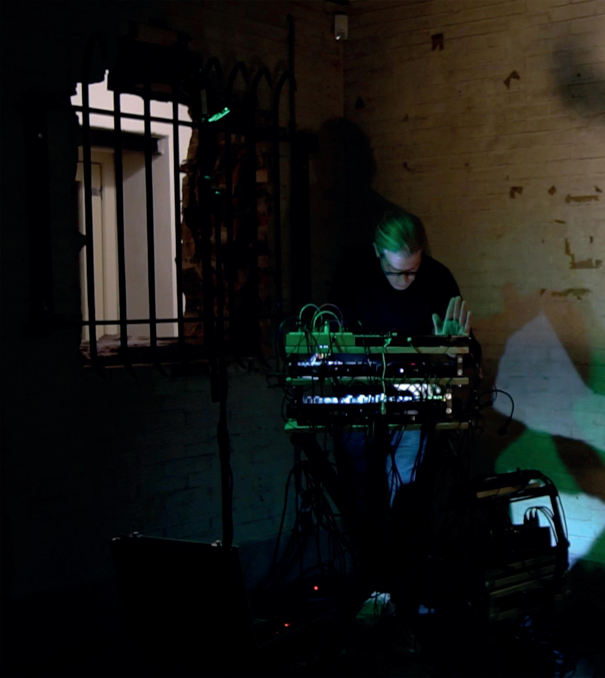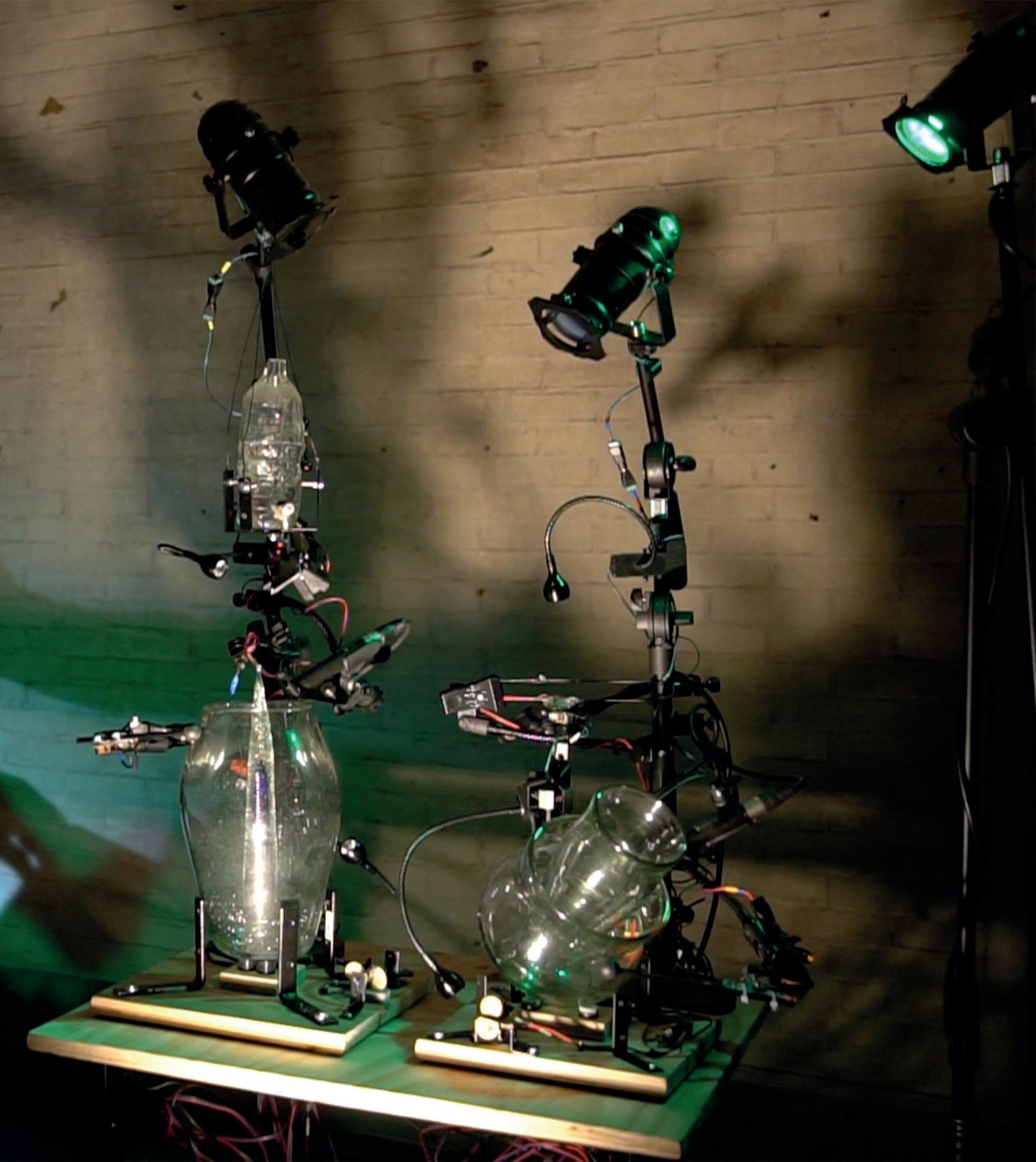 geluidsperformance van Pierre Estourgie. Een geluidsbeeld dat niet alleen voortgebracht werd door elektronica maar ook door een op afstand aangestuurd akoestisch instrumentarium bestaande uit glazen kolven en voorwerpen. Een bijzonder schouwspel na een bijzonder gesprek.