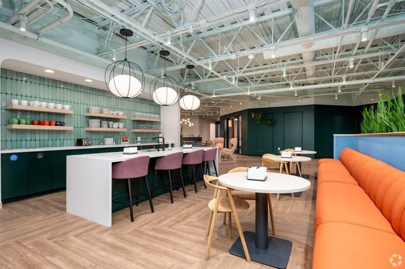 U.S. 31 and 96th Street. The newly renovated open atrium creates a welcoming environment for office tenants and visitors alike. The coworking center spans 20,000 square feet and includes 66 private office spaces in various configurations, three cutting-edge meeting rooms, multiple phone booths and a lively social hub with high-speed