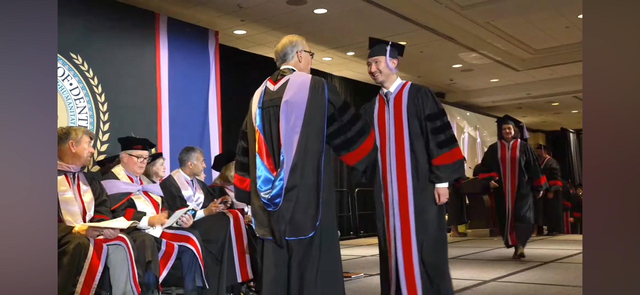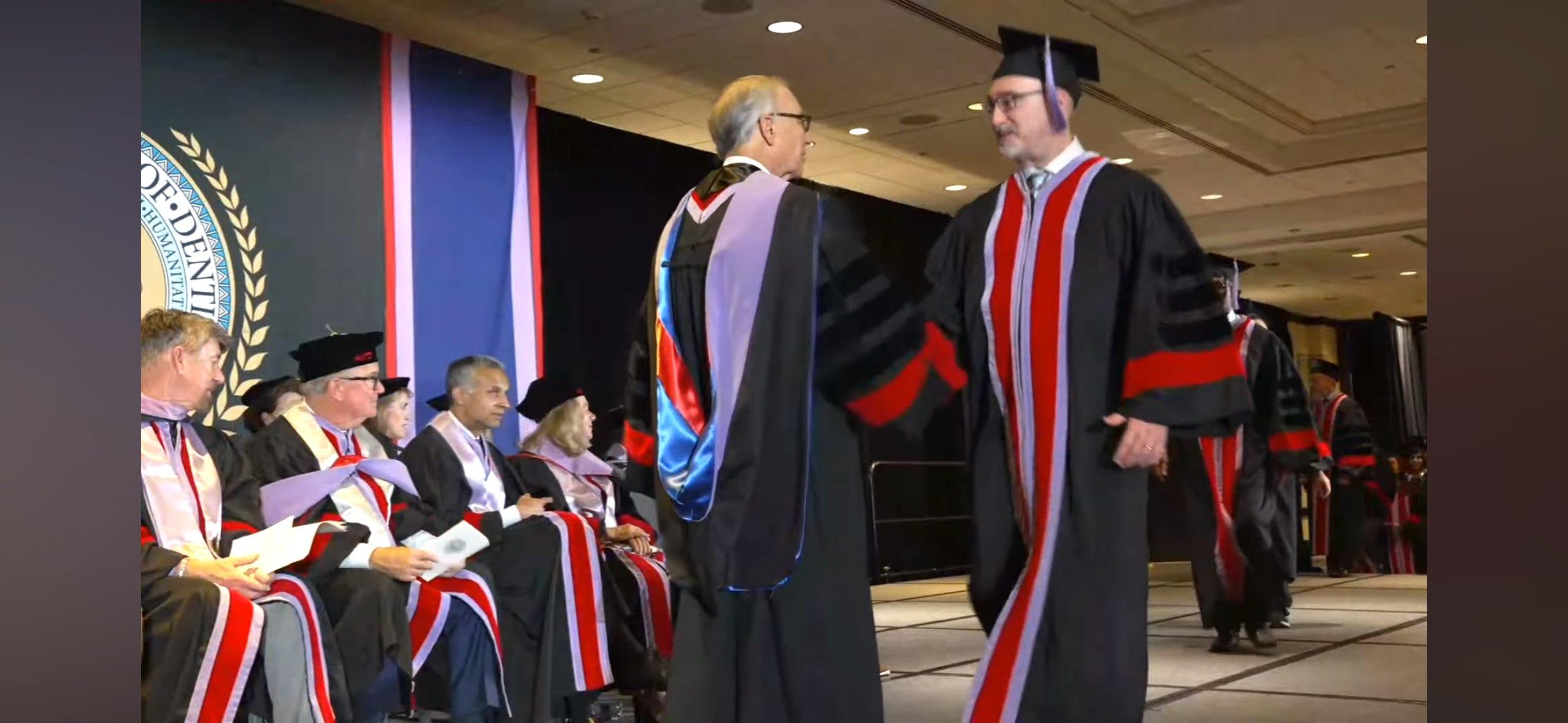 Robert Faiella presides over the convocation ceremony and welcomes new Fellows with a heartfelt handshake