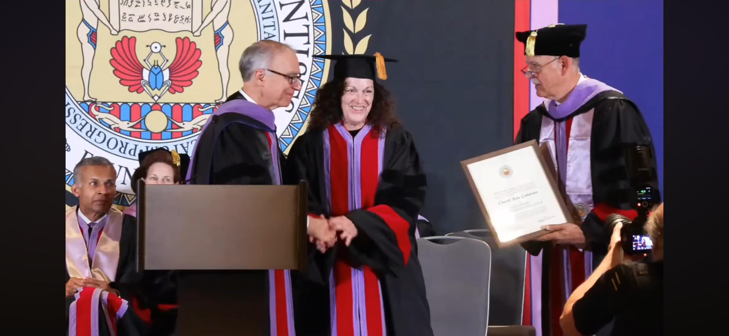 Cheryl Cameron, MSEd, PhD, JD is recognized by President, Robert Faiella