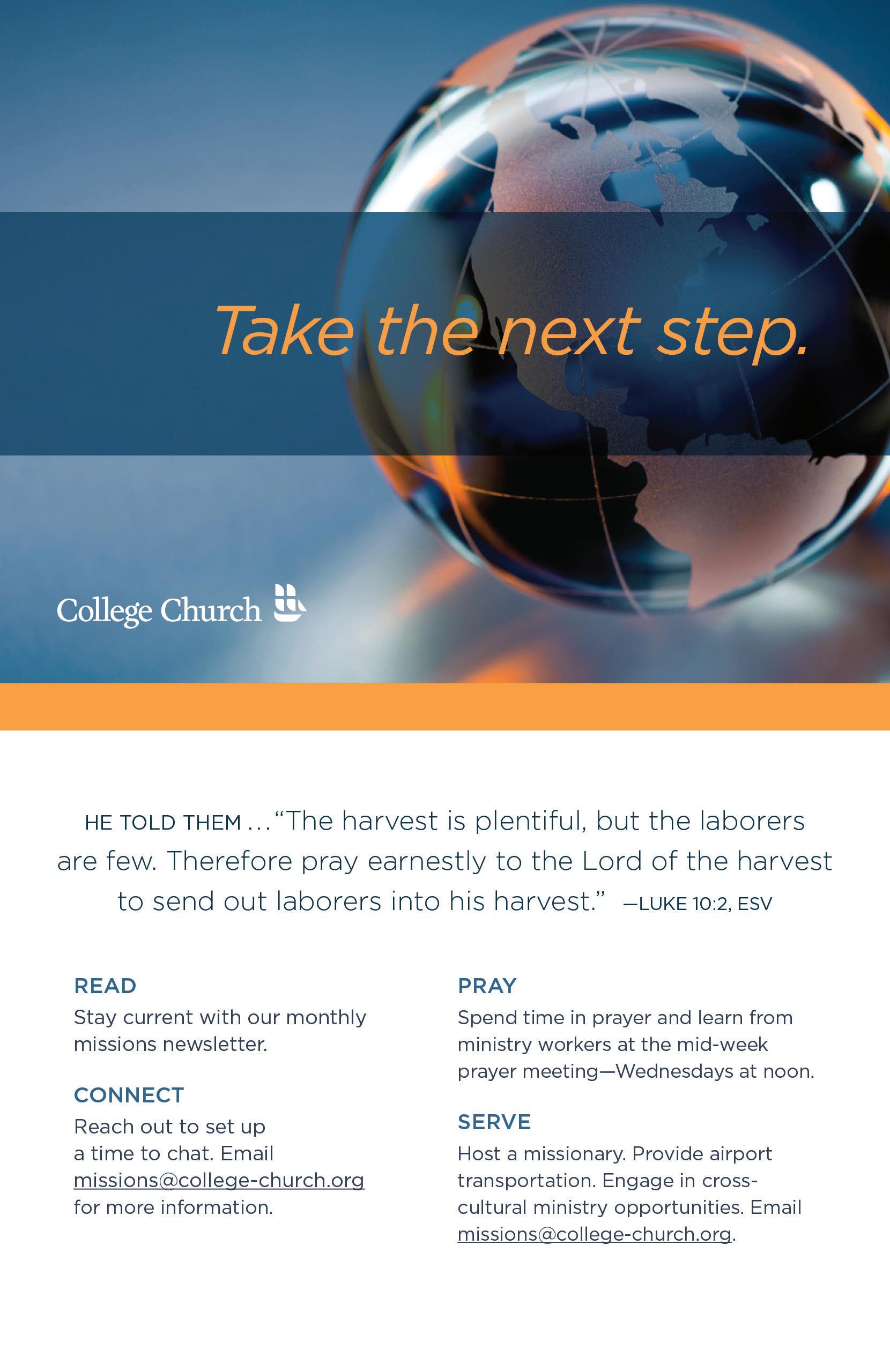 • Pray that they would be attentive to God’s leading as they seek to equip servant leaders and promote a flourishing church in their region.
