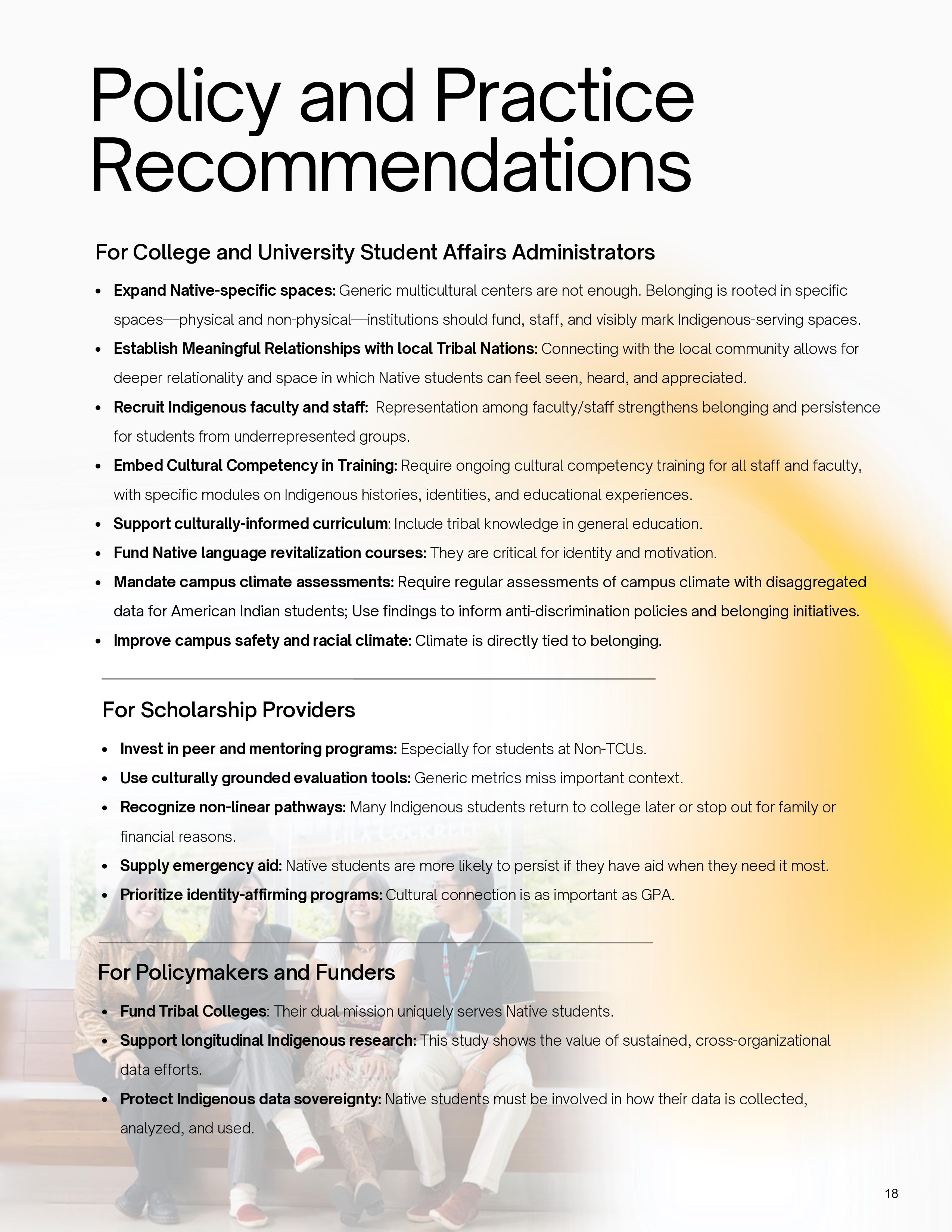 Findings from the study are shared through an executive summary and research brief to guide institutions in creating more supportive and inclusive learning environments for Native students.