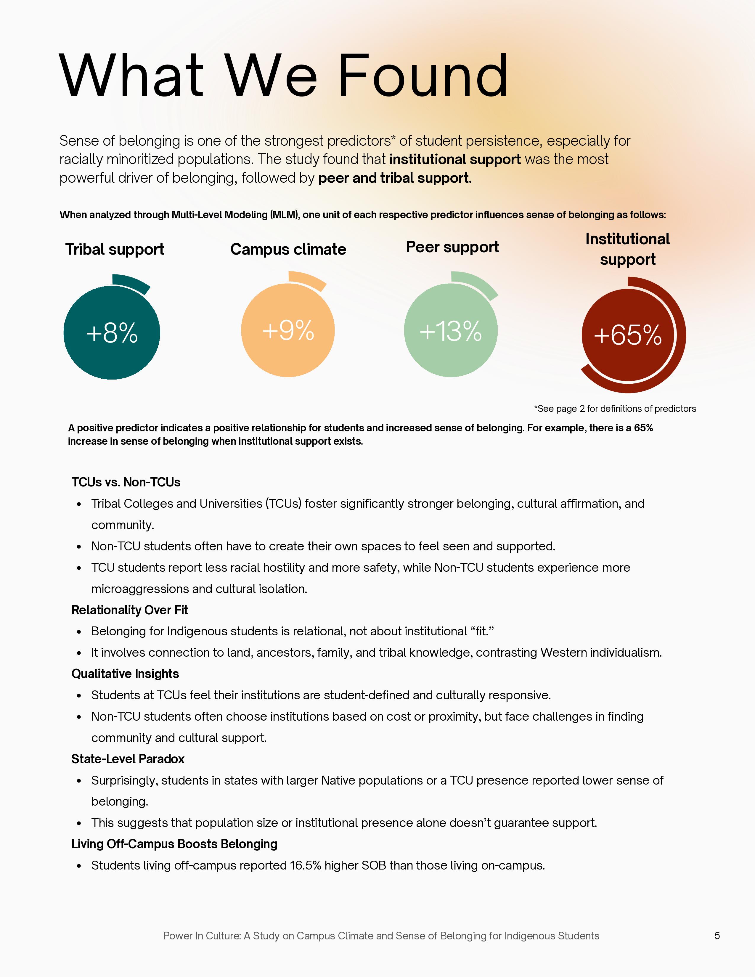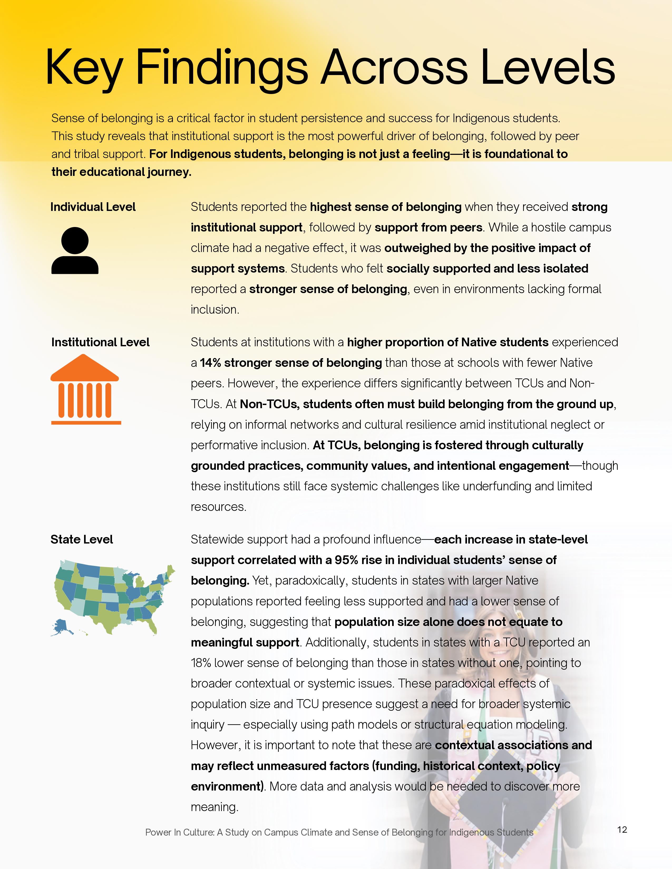 Findings from the study are shared through an executive summary and research brief to guide institutions in creating more supportive and inclusive learning environments for Native students.