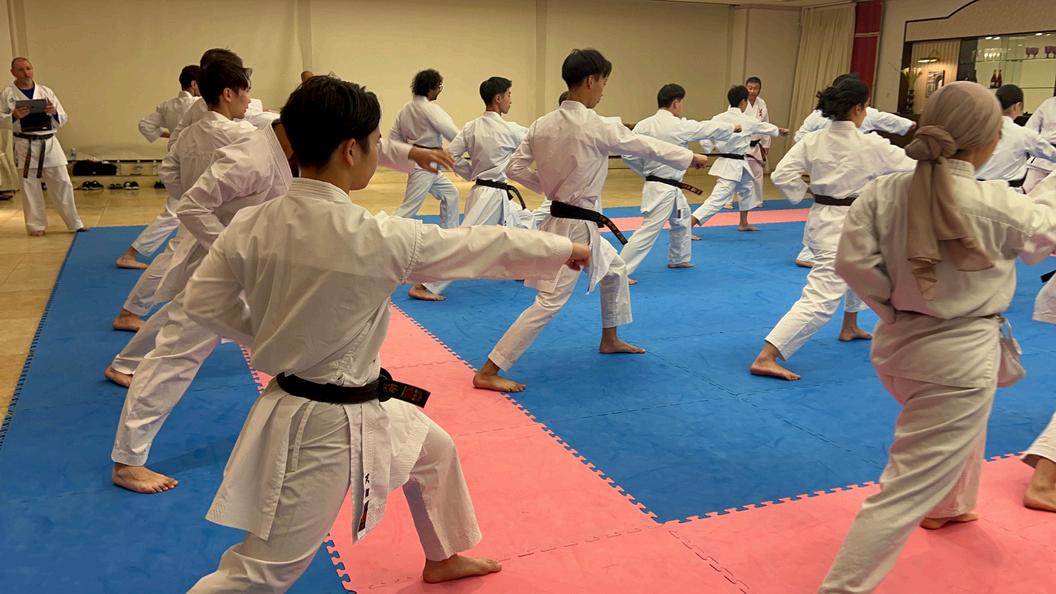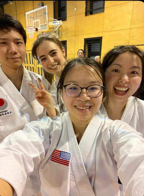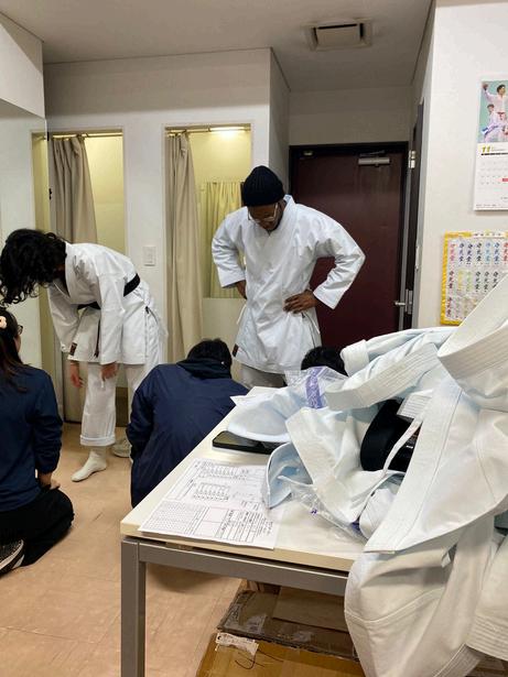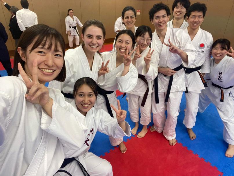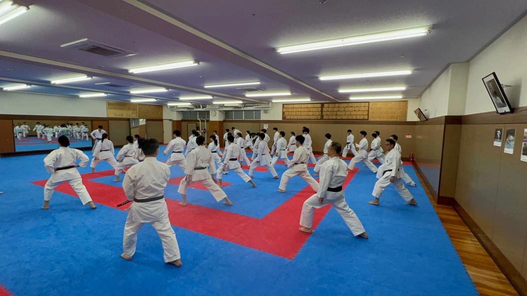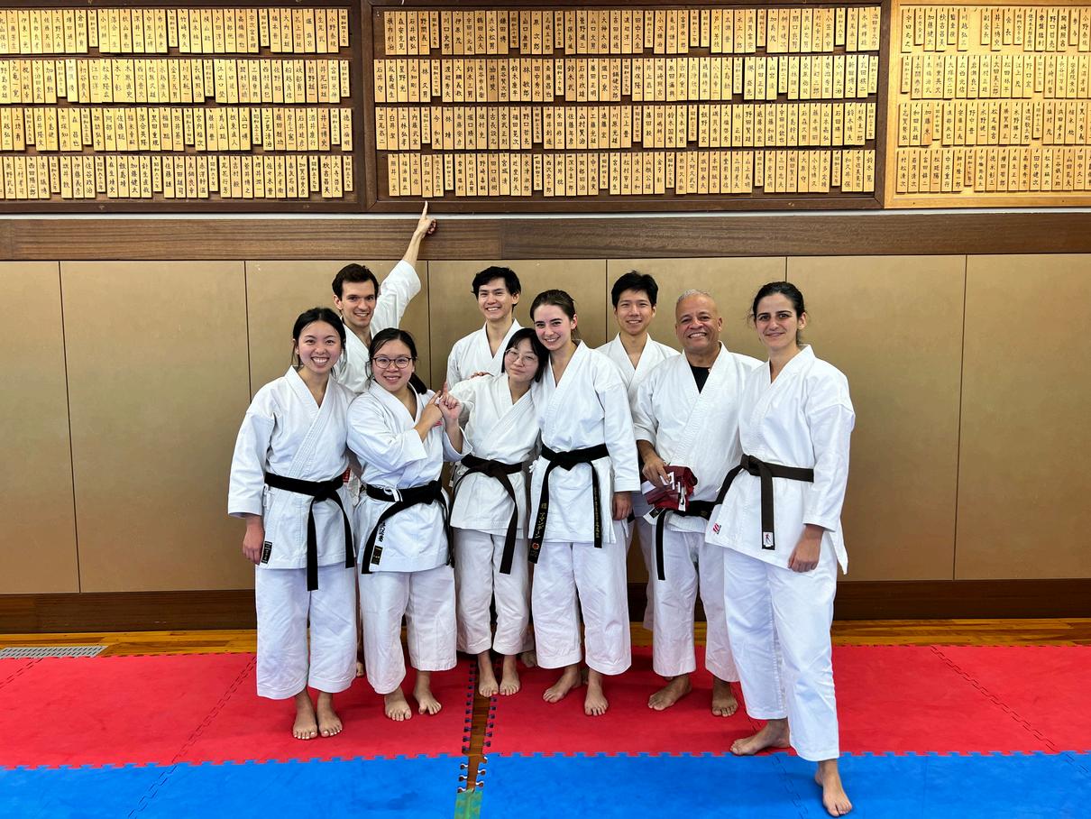 We then had the unique privilege of joining a Karate practice at Waseda University led by Imaizumi Sensei, focusing on proper Karate kihon through drills emphasizing stance stability and hip mechanics. We also practiced segments of Jion to further incorporate these kihon mechanics into our kata. Finally, some Japanese students performed remarkable demonstrations of kata from different Karate styles and jiyu kumite. At the end of the practice, Inoue Sensei, the President of the Waseda University Karate Club Alumni Society, shared with everyone the history of the Karate club. He also explained the dojo’s black belt wall, with placards recording all the black belt Karateka who graduated from Waseda University over time. It was a very moving moment for us to find Tabata Sensei’s placard and reflect on how far his legacy has spread.