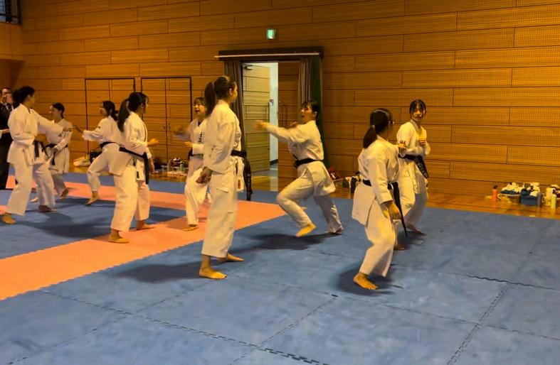 After the lecture, we joined the Karate practice of the Gakugei High School’s Karate club. The school’s Karate club typically wins or places in the top two in the Japanese high school Karate competitions, and when we saw their training, we understood why: the students’ level of kumite and kata training was impressive. We were privileged to watch the students feature some unique kumite training for developing distancing (maai) and reaction timing, as well as special individual and team kata demonstrations that included bunkai!