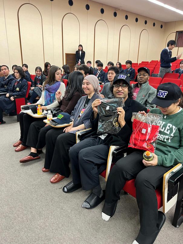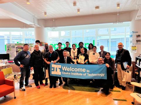 On Wednesday, we took the Shinkansen from Kanazawa to Osaka in the morning. Upon arriving in Osaka, we went to the Osaka Institute of Technology (OIT) campus where Murouka Sensei, Chemistry Professor at OIT and organizer of the OIT international relations department, welcomed us and presented the various international affiliations that OIT develops. He explained about the English language and Japanese language exchange program OIT hosts with universities in Indonesia as one example, and he wished our MHKH students a productive visit in Osaka as we continue on our Karate mission to connect university students practicing Karate around the world.