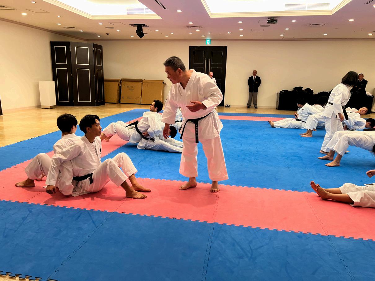At night, the JUKF had organized a Kansai region dinner reception at a local Chinese restaurant. Many MHKH students, for whom this was the first time in Japan, remarked how impressed they were by all of the Karate instructors and leaders present that night (over 50 people), all dressed in formal wear and united in their vision of using Karate to develop the character of the next generation of youth and create better citizens in the world. The senior members of the JUKF each made a short speech to welcome everyone and introduce their region There were legendary Karateka in attendance, champions from the older era as well as the new era. We Araga san, a Karate Olympic medalist from the summer 2021 Tokyo Olympics! This ion t d K t t i it t d ts d th ld d t h l k th
