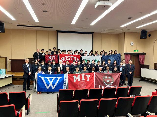 Our second day in Osaka was an exciting whirlwind of activities. First, we visited Gakugei High School. While being a Japanese high school (and in fact is Ruiki san, Kobayashi Sensei’s son,’s old high school), it is also an international British Columbia school where students can enroll in a special dual program. There, students can get both Japanese and Canadian high school accreditation simultaneously by following courses from both programs. The principal, staff, and organizers of this international department at the school had prepared a special lecture opportunity, and our very own Carol Cuesta delivered an exciting lecture on astrophysics to the high school students. She began with a general description of the developments in astrophysics in the past several decades, then explained major recent achievements and the biggest challenges that this new generation of students will have to overcome to keep expanding our understanding of the universe.