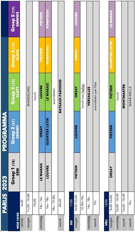 Met deze beknopte reisgids willen we jullie alvast wat voorbereiden én wat doen wegdromen. Je vindt er het dag-aan-dagprogramma; leuke weetjes en achtergrondinformatie over Parijs, praktische info en afspraken.