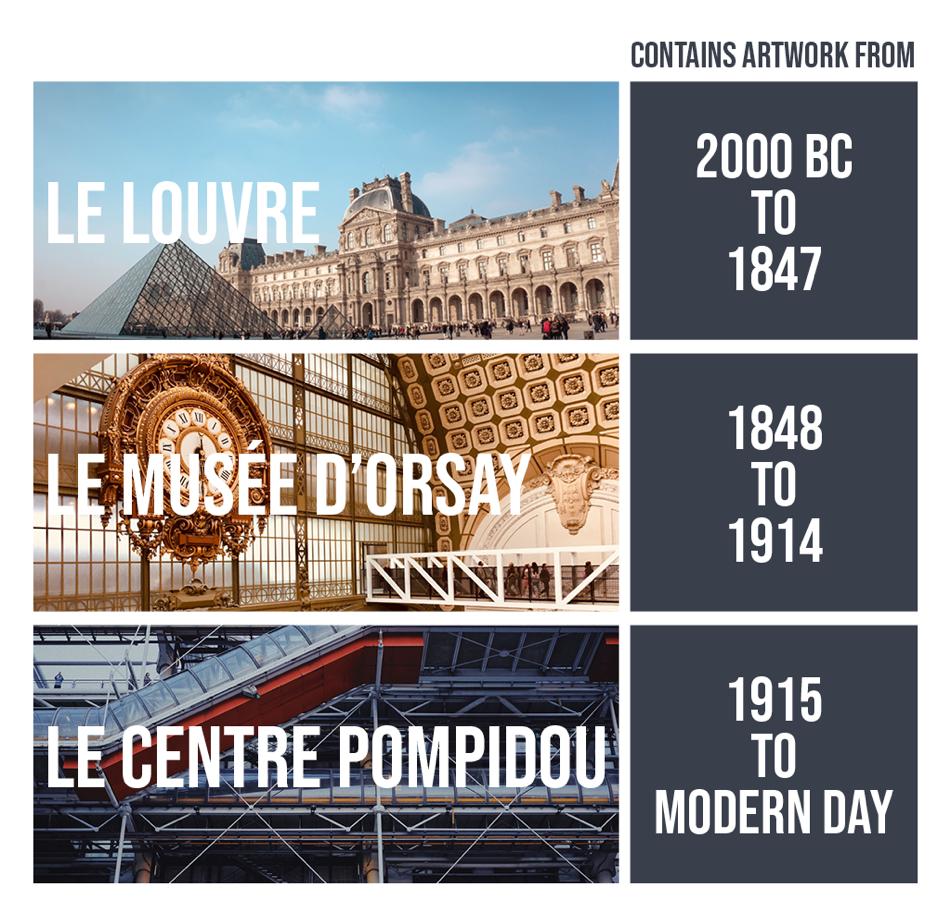 Er zijn een aantal musea die je tijdens een bezoek aan Parijs zeker niet kunt missen. Een van de meest bezochte musea ter wereld is . Er worden meer dan 35.000 voorwerpen tentoongesteld, verspreid over drie vleugels in het paleis. De collectie is verdeeld naar herkomst. Er zijn zalen met Romeinse kunst, Egyptische kunst, Griekse kunst en Oriëntaalse kunst. De beroemdste kunstwerken in het museum zijn de Venus van Milo, de Stervende Slaaf van Michelango en natuurlijk de Mona Lisa van Leonardo da Vinci.