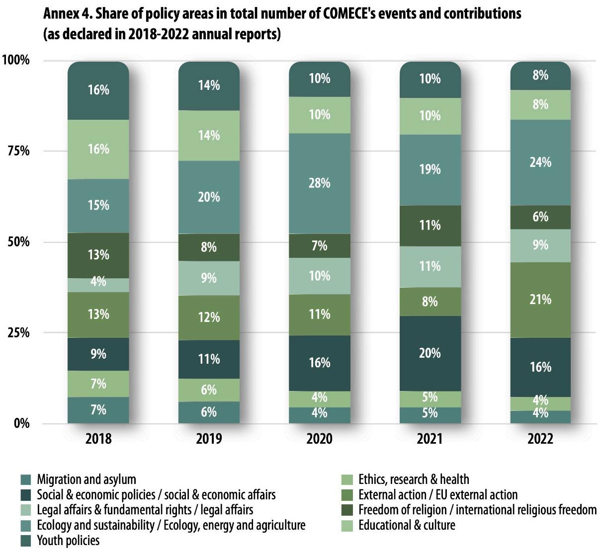 Créée en 1980, la COMECE est un acteur bien connu dans le domaine de la défense des intérêts à Bruxelles. Sa mission consiste à dialoguer avec les institutions européennes au nom des épiscopats catholiques des États membres de l'UE et à tenir les conférences épiscopales informées des processus d'intégration européenne.