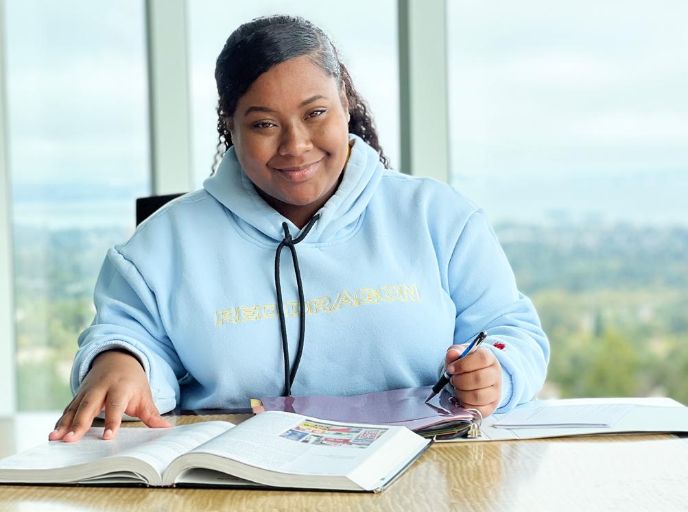 In our student body of 13,200, some patterns emerge . A “typical” CSM student is just slightly more likely to be a woman (51%) and a person of color (64%), living in San Mateo County (78%) . She is a graduate of one of our local high schools, probably San Mateo High School — where CSM got its start — and is the first in her family to attend college (55%) . She studies part-time (58%); and most likely has significant commitments outside school, notably to a job (the main reason students gave for interrupting their education over the pandemic was the need to prioritize work) . She is planning to transfer (61%) . She is likely middle-class — not necessarily low income (21%), but possibly receiving financial aid (38%) . And largely thanks to the pandemic, she is well used to taking classes through multiple modes of delivery: face-to-face or online, synchronous or asynchronous .
