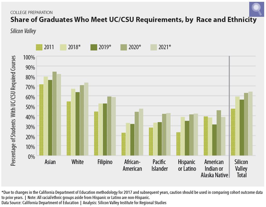 The largest number of CSM students who transferred to CSUs identified as Latino/a/x (657) followed by White (507) and Asian (490) . Two groups that were low in CSU transfer numbers were Black Non-Hispanic (55) and Pacific Islander (33) . More efforts are needed to support these two groups in transferring to CSUs .