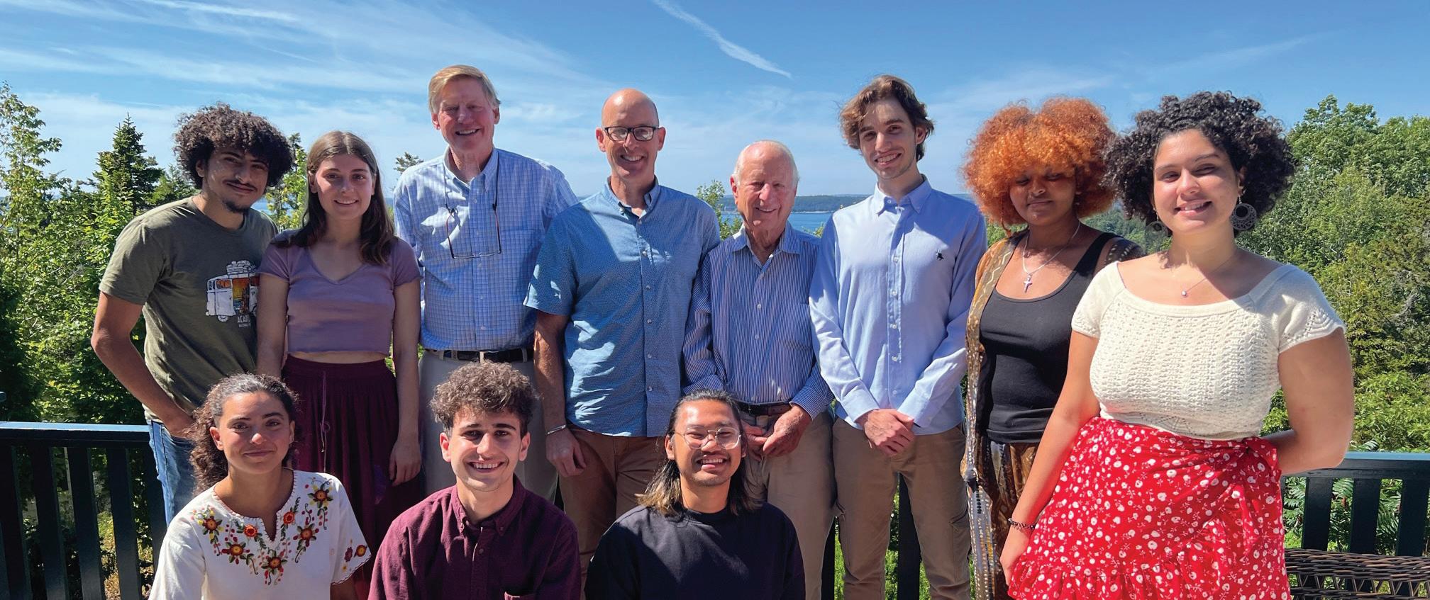 Shelby Davis and Phil Geier, co-founders of the Davis UWC Scholars Program, with COA President Darron Collins and some current Davis UWC ScholarsThe Bass Chair funds a range of field and lab-based opportunities. During the 2021-2022 academic year, I taught a total of 60 students and mentored 14 student advisees. Highlights included a float trip down the Penobscot River, a field trip to North Woods Ways, community water quality outreach projects, and student presentations at regional conferences.