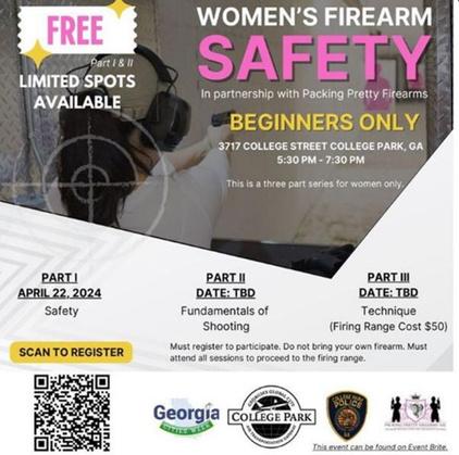 On June 12, 2024, The College Park Police Department held Part II of the free Women’s entitled Fundamentals of Shooting at the Godby Road Police Precinct located at 2330 Godby Rd, College Park, GA 30349. Part II of the symposium was designed to help women of marksmanship that are essential for ensuring an accurate shot, consistency between shot accuracy, and the safety of those around the firearm user. The experienced Packing Pretty covered everything from stance or platform, grip, draw, sight alignment and sight picture, follow trigger management, breathing, follow through, and recovery.