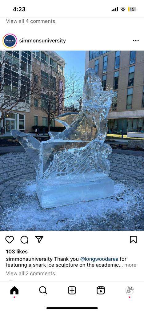We hope you got the chance to participate in Longwood Collective’s Winter Stroll this past month. The inaugural event featured ice sculpture artists and had frozen statues across all of Longwood. The COF had three sculptures: a fox at Emmanuel, a shark at Simmons, and the Garner Museum had one of Isabella and her dog. We hope to join in again next year!