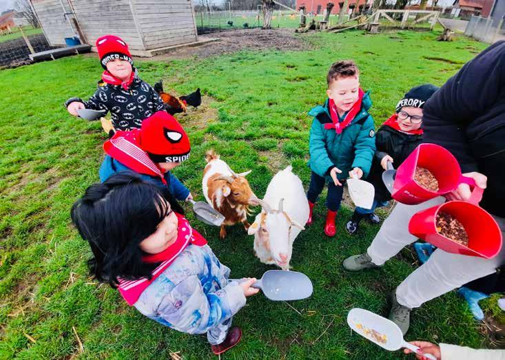 Aansluitend kregen de kleine boeren en boerinnen de kans om écht mee te helpen op de boerderij: de koeien eten geven, de stallen vegen, de geiten voederen en de ezel kammen, .... De landbouwsector werd al meteen positief voorgesteld aan de jongsten van de school.