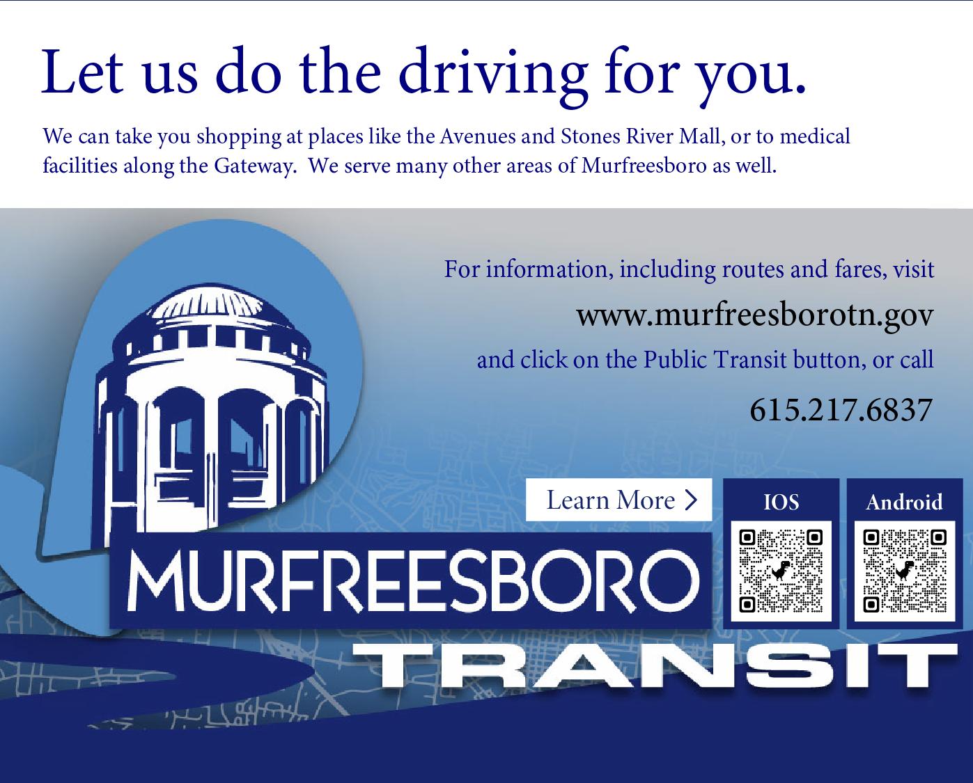 Raider Xpress is a shuttle service designed to transport faculty, staff, students, and visitors around campus. The service is available only when classes are in session. Current bus routes with construction detours can be found at parking.mtsu.edu/transportation .