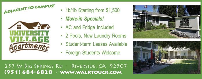 Located across the street from University Village, and just half a mile from the University of California at Riverside (UCR)
