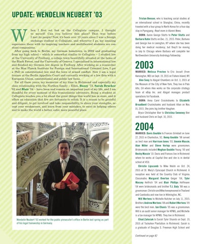 UPDATE: WENDELIN NEUBERT ’03