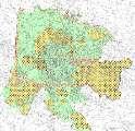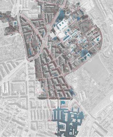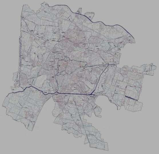 La mappa della rete idrografica della città individua con linee sottili i punti da cui si origina il deflusso superficiale e con linee più spesse le aree dove si accumula più acqua l’affluenza di più rami.