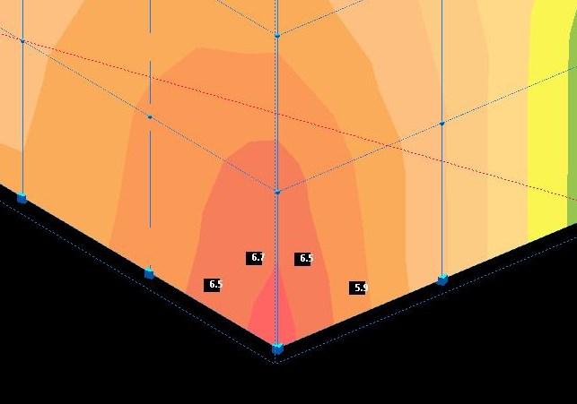 Nel caso di lamiera collaborante, i calcoli vengono effettuati trascurando l'effetto dello scorrimento di estremità tra calcestruzzo e acciaio della lamiera Secondo il capitolo 4.3.6.3.2 delle NTC2018, ciò è possibile solo se “nei risultati sperimentali il carico che causa uno scorrimento di 05���� è maggiore di 12 volte il carico della combinazione caratteristica considerata, oppure se la tensione tangenziale di scorrimento all’interfaccia è inferiore al 30% della tensione limite di aderenza ����,����”. Se dalla prova sperimentale, di cui si è già parlato ai paragrafi 2 e 6.3 della presente relazione, dovesse risultare che il carico a cui è associato lo scorrimento di estremità di 0.5���� non superi 1.2 volte quello di progetto allo SLE, secondo l'EN 1994-1-1 al capitolo 9.8.2(7) devono essere previsti degli ancoraggi di estremità per poter assicurare, ai fini del calcolo, il mantenimento dell'ipotesi di scorrimento nullo o trascurabile.