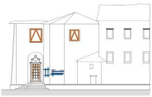Inserimento del portale gotico nella muratura Portico delle Misure