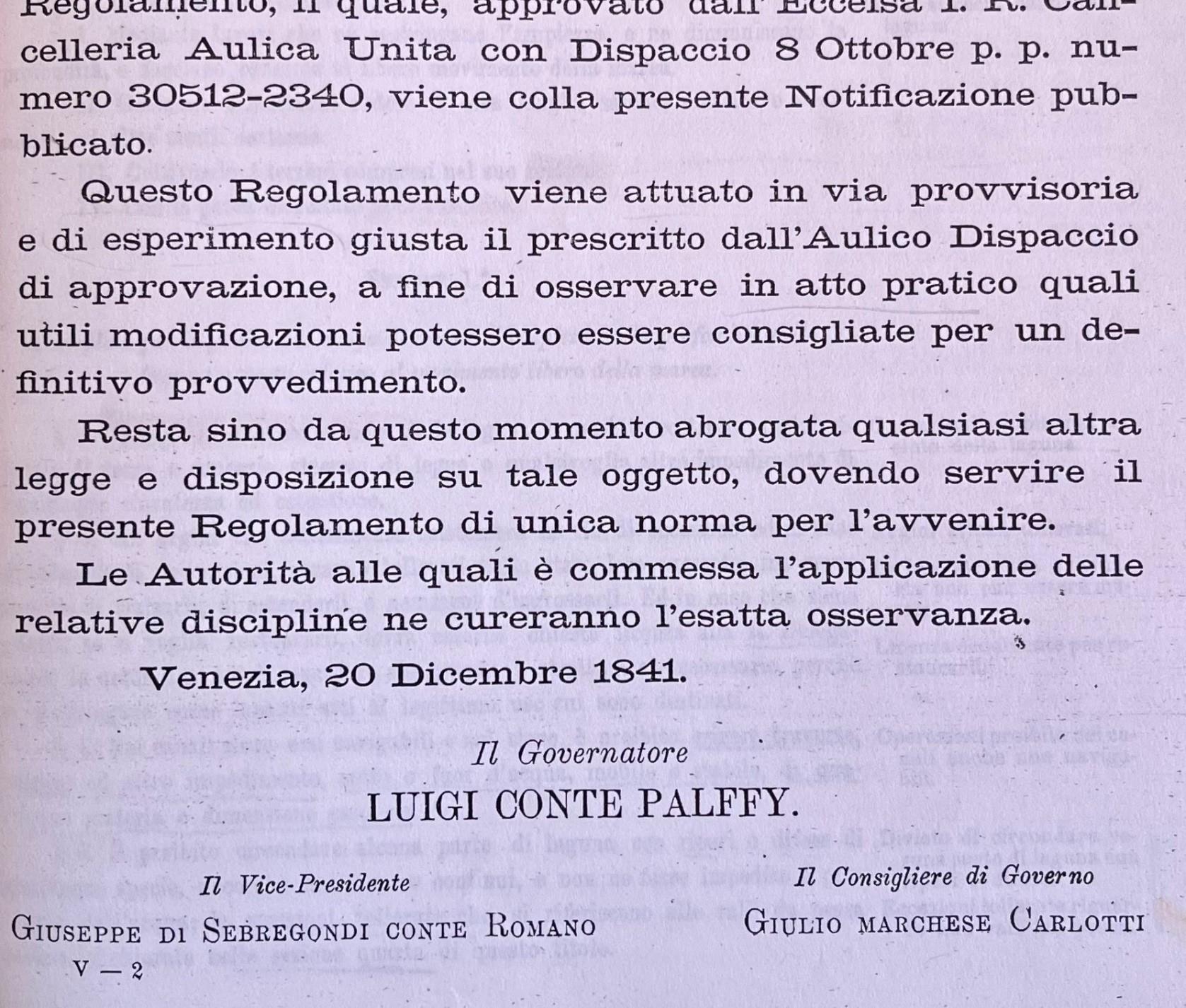 ●IlnuovoRegolamentoAustriaco (provvisorio)richiamava,aggiornandole,le prescrizionieledisciplinevigentiaitempi dellaSerenissima.