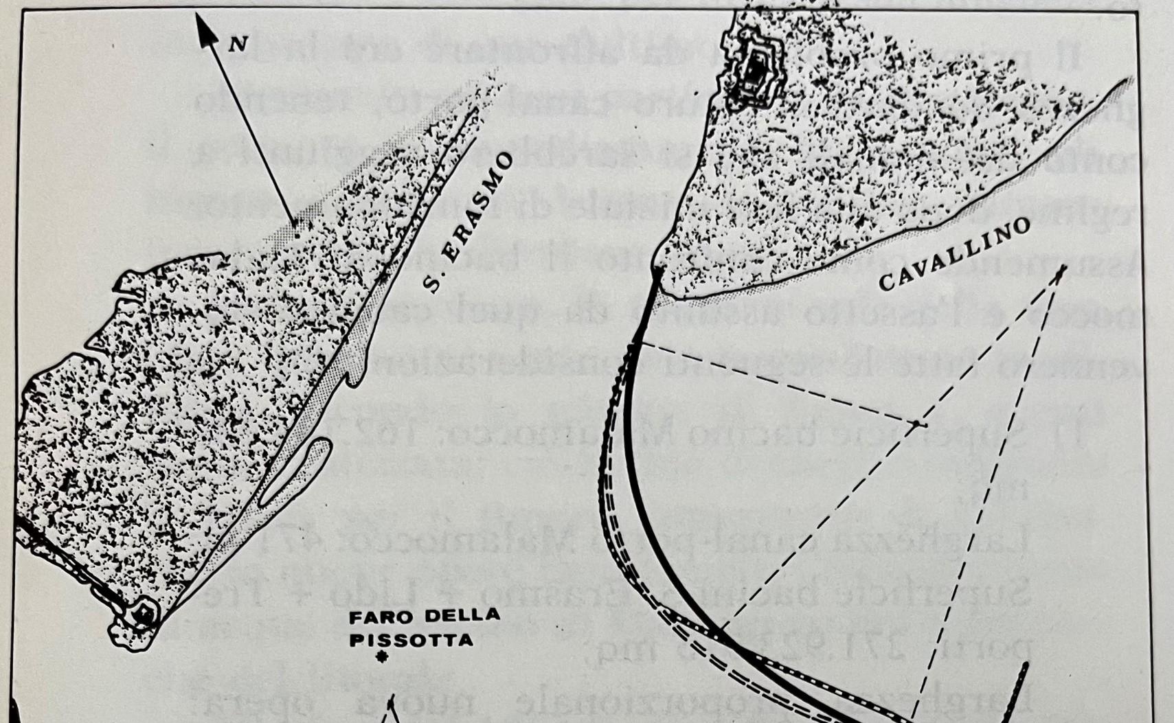 ●PrevalseilprogettodegliingegneridelG.C. TommasoMATIeAntonioCONTIN:lefoci portualidiS.Nicolò,S.ErasmoeTreporti sarebberostateriuniteinun’unicabocca.