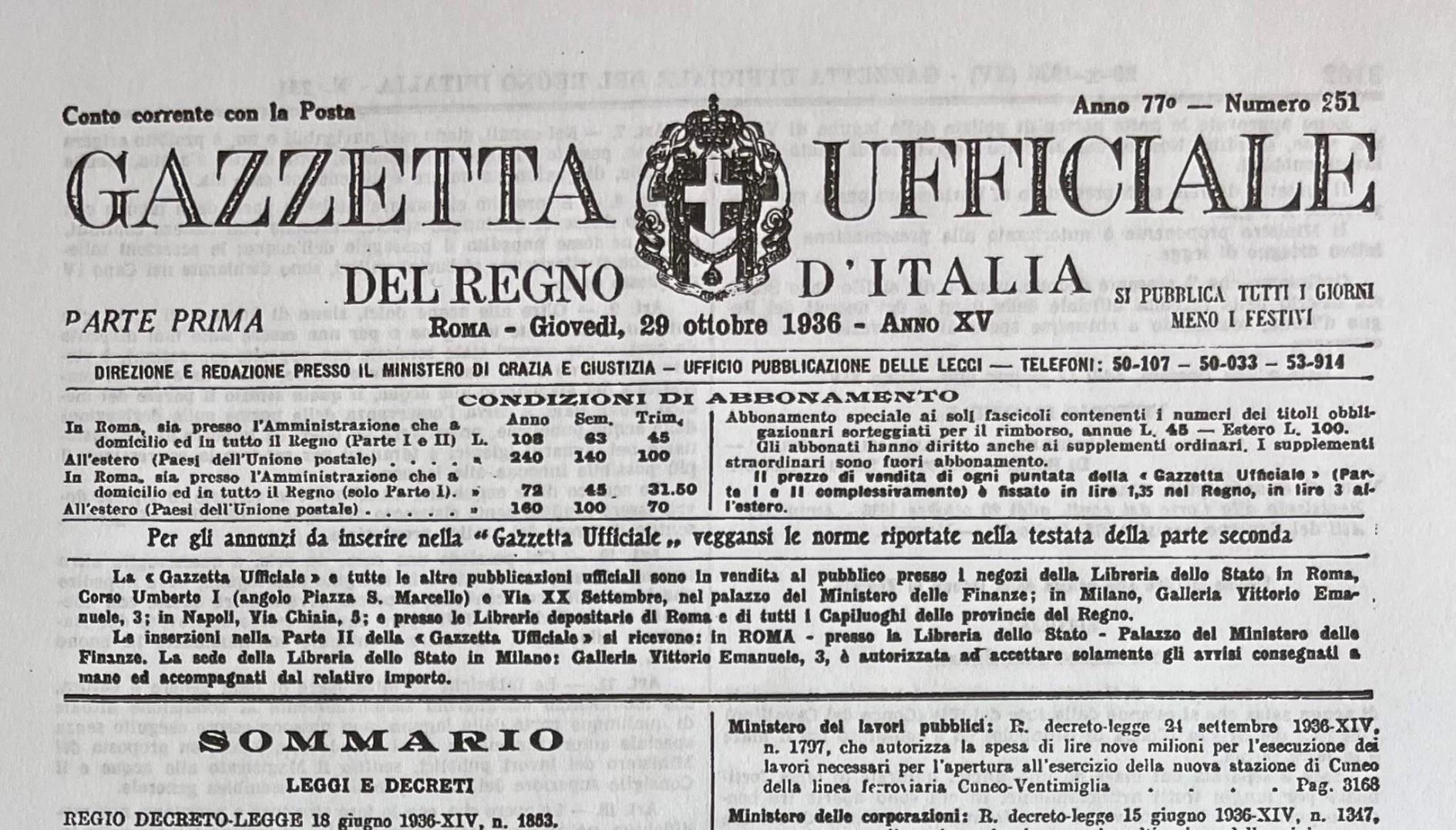 (RegioDecretoLegge18giugno1936n.1853convertitoinlegge7gennaio1937,n.191)