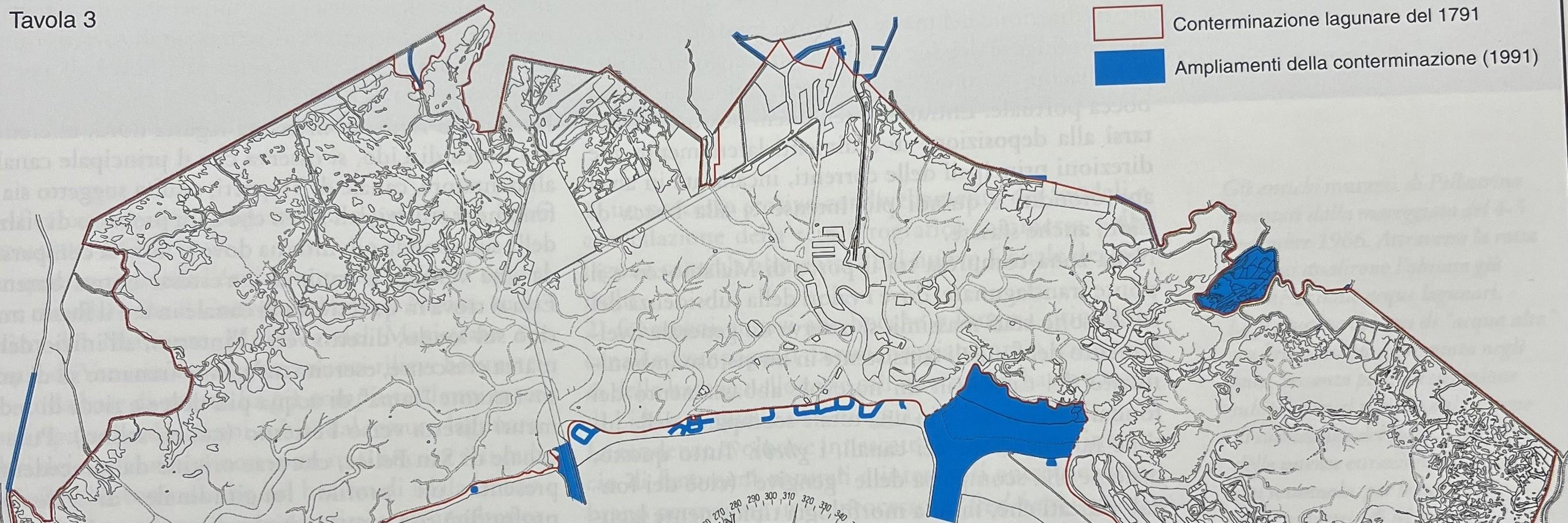 Lasuperficieamministrativadellalagunadi53˙000ettariaumentavadi1˙834 ettari,avendoinclusoleareediS.Erasmo,lido,Pellestrinaeglispaziacquei inglobatidallenuoveboccheportuali.