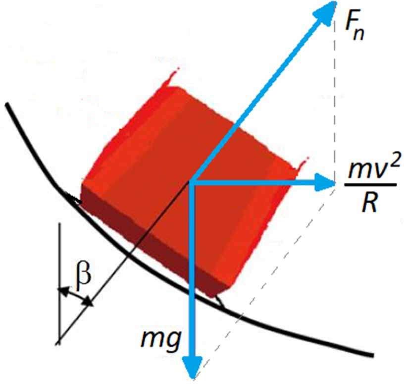 forza contro la parete (tratti curvilinei) composta da forza peso e forza centrifuga per determinare l’ attrito del ghiaccio peso
