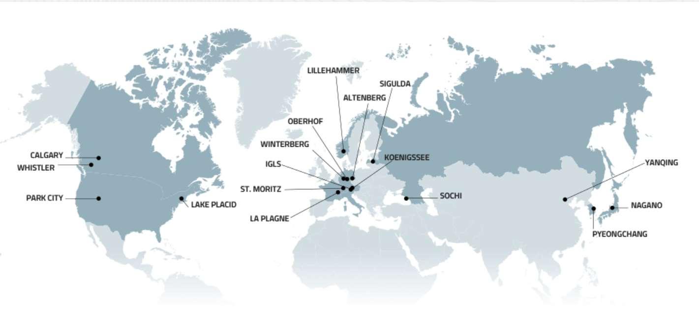 LE 17 PISTE OLIMPICHE IBSF