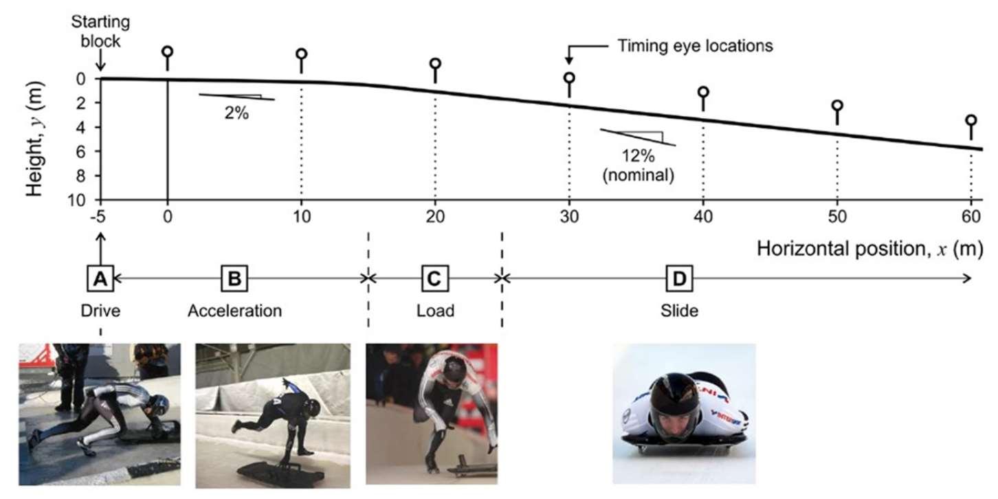 α pendenza variabile del track mgsinα forza agente del moto Ffriction forza di attrito (somma di attrito con ghiaccio e drag aerodinamico)