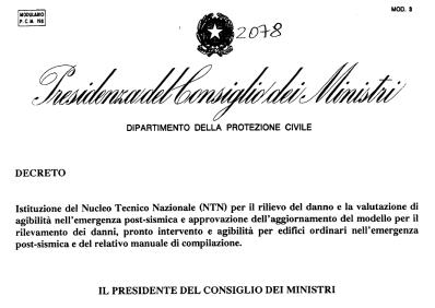 L’istituzionedel NUCLEOTECNICONAZIONALE perilrilievodeldannoelavalutazionediagibilitànell’emergenzapost