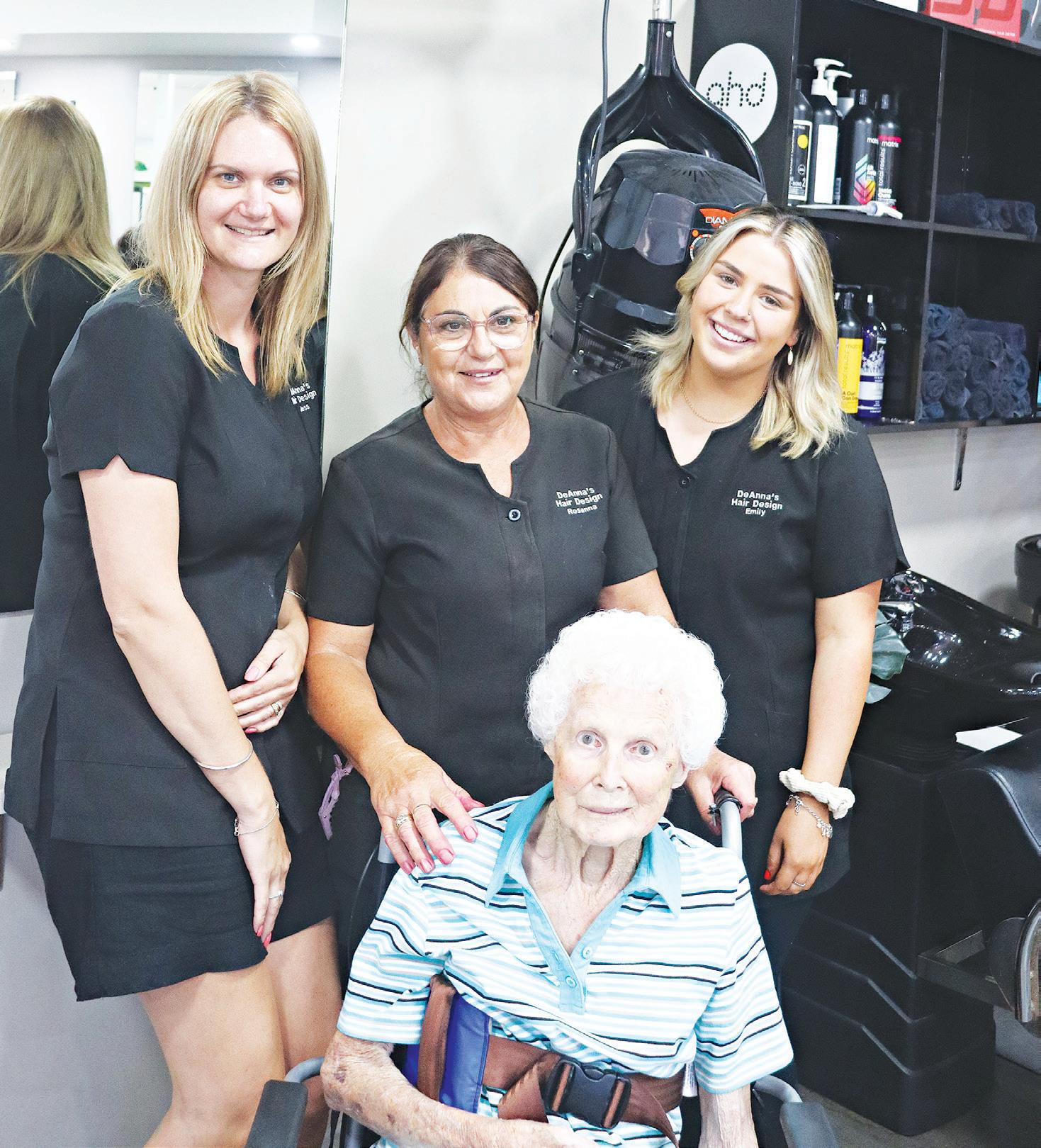 GOODBYE: Elsie King (seated) enjoyed her last appointment at DeAnna’s hair salon recently, after 42 years of patronage. She is pictured with hairdressers Jess Tilbrook (left), Rosanna and