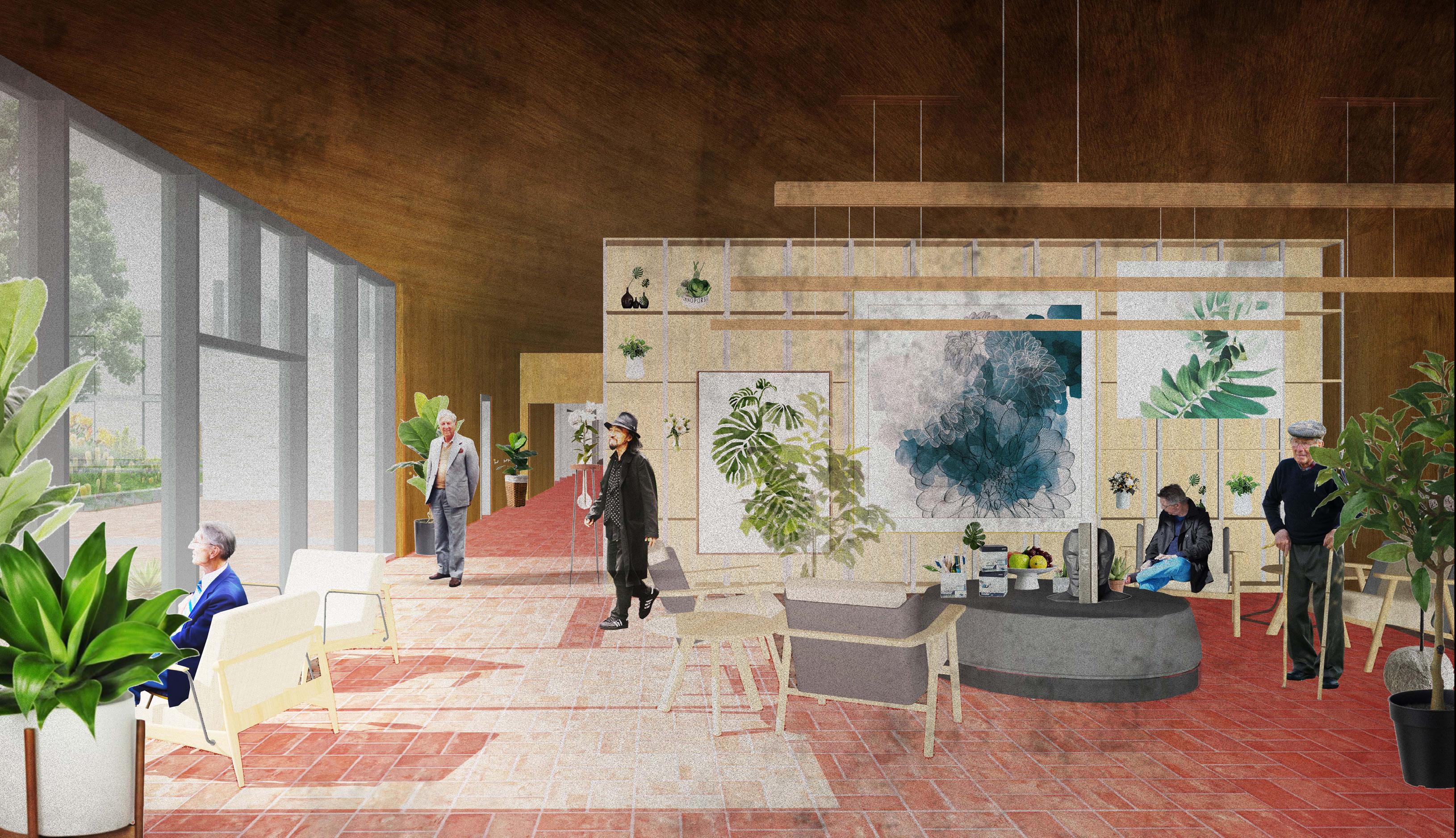 This art school is designed to fit every age of people's need, if they want to learn art. They can choose different time and different teacher, they can even be their own tutor. Beside the need of learning class, other basic need for different group of people are different. this need also taken into consideration while designing.