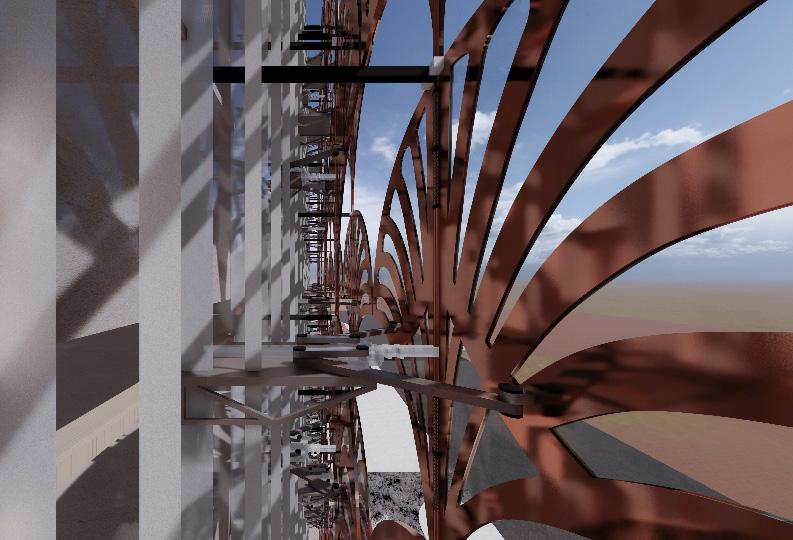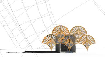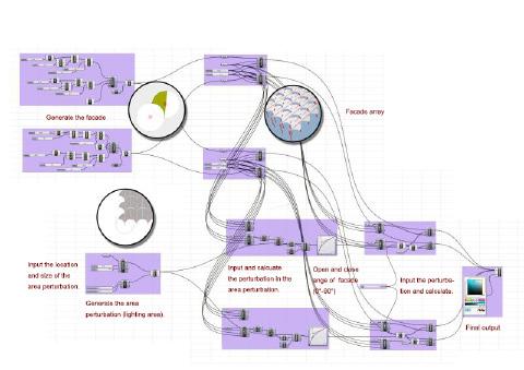 This teamwork is focusing on designing an adaptive surface that can be applied to a curved façade. The first step is to propose a hypothetical small building volume and later move onto refining the envelope of it as an adaptive surface. The proposed design is using parametric strategies to allow the exploration of various solutions based on different data to improve building performance. Every design proposal is responded to environmental, structural and usability issues.