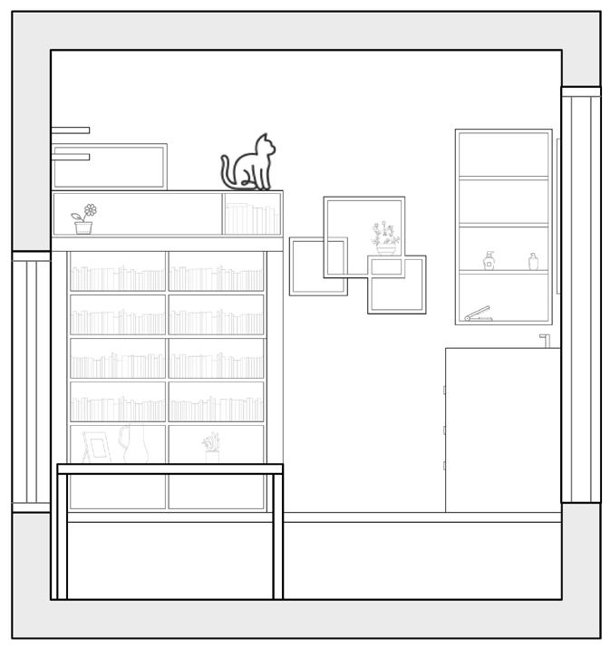 When people with a cat wants to share living with others, the fundamental part is to provide enough space for cat to live without interrupted others. They also need multiply irregular space for cat to explore and steady storage space the cat cannot enter. Additionally, cat is a creature that always show of on people's computer or books when people are working. In this situation, cat and people are sharing the same space which means the height of furniture should be calculated specicies. There should be separated living areas between people and cats independent living space for people should be provided. The lighting and ventilation, and transform the original lighting and ventilation areas are also need to consider.Make good use of vertical and indoor roof Spaces. Cats love to climb up and down which means the certical and indoor roof space should be used in a good way.