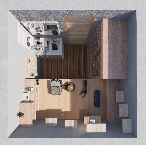 A harmonious sanctuary where human and feline coexist, each finding comfort, privacy, and joy in a thoughtfully designed minimal space. -- YUQI CAO