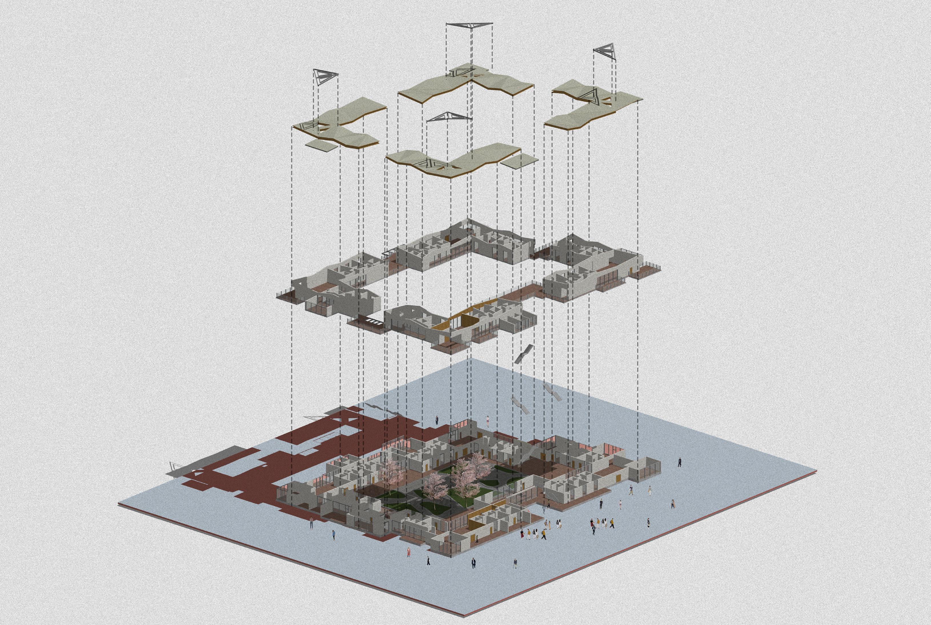 Site Create Circulation Double Layer Increase Gap Extend local house Add Terrace Civic Center Power Station Playground School Nursing Home Supermarket Site