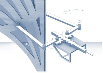 Depending on the intensity and direction of sunlight, the blades open and close.