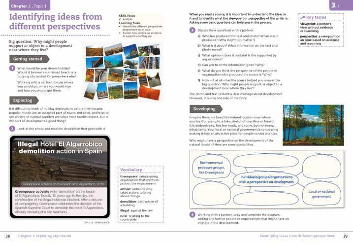 • Clearly summarising which skill strands, learning objectives, issues and key terms are covered in each lesson, with chapter overviews and displays where topics, learning objectives and challenges from the curriculum framework have been supported