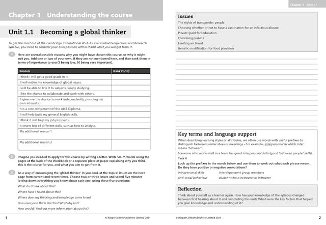 • Feel confident teaching Global Perspectives with comprehensive and practical teacher support, including ready-made lesson plans, worksheets, an activity bank full of active learning teaching ideas and a scheme of work to help plan for progression