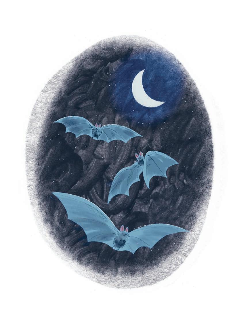 Bea roosts with her family, called a colony. Sometimes there are up to 50 bats in a colony. Bea hunts for moths and flying insects at night and sleeps during the day. You might even spot her in your garden! She learnt to fly when she was three weeks old, and when she was six weeks old, she learnt to hunt for herself, too.