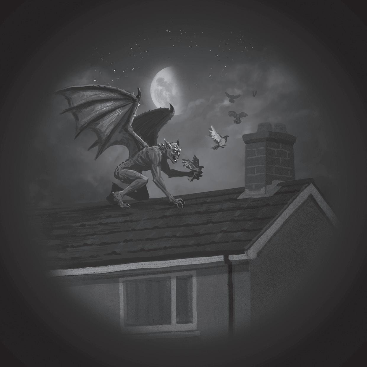 He was four streets away, yet Ben imagined he could hear the gargoyle’s claws scrape on the red roof tiles as it crawled towards a chimney. A huddle of sleeping pigeons was in its path, but they burst into the air, panicking as they tried to escape.