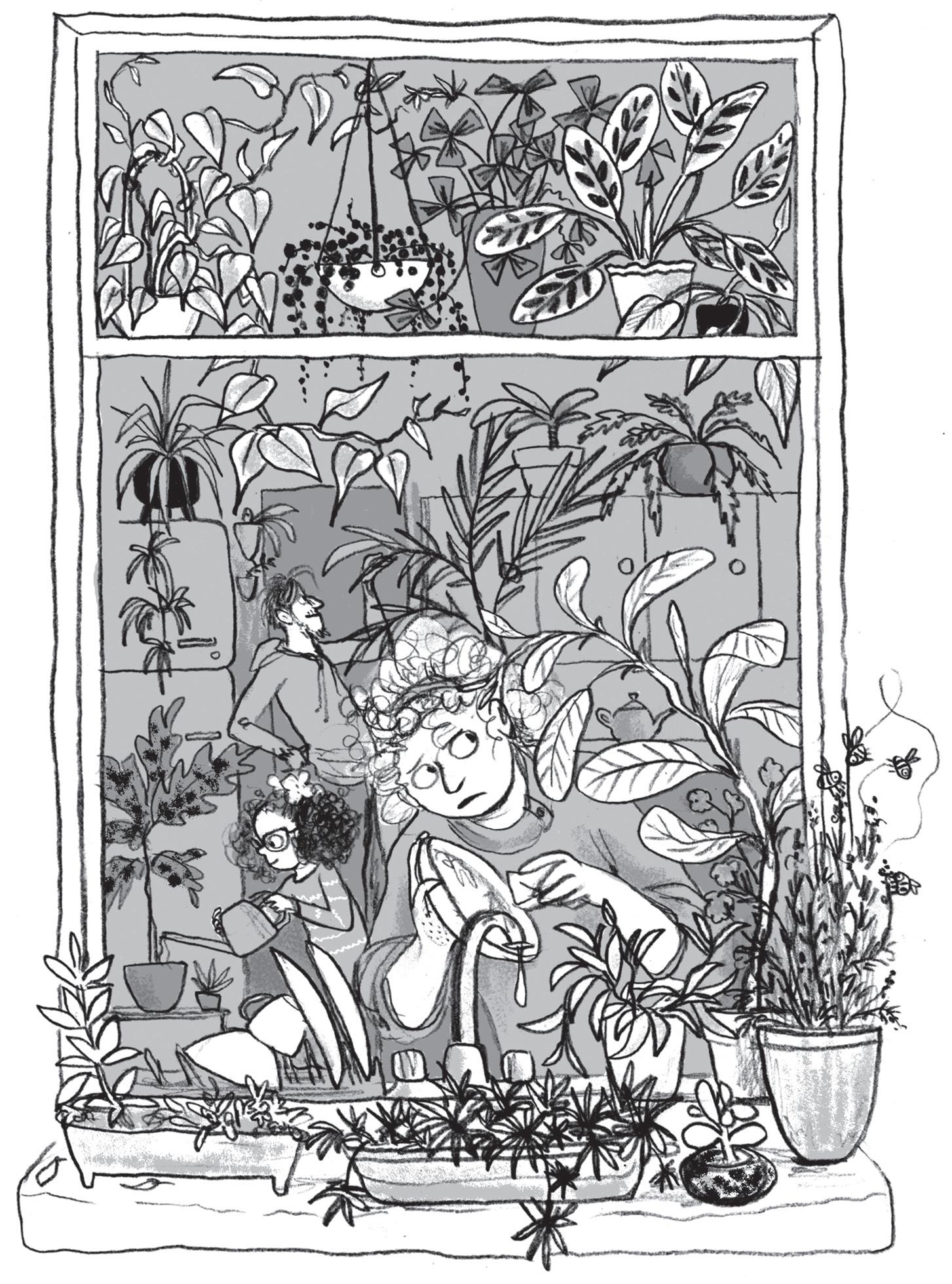 sticking a nosy arm into whatever you’re eating. And you are sure to get a sharp poke in the eye from something green when you do the washing-up. All these plants are trying to get your attention and to listen in on your thoughts.