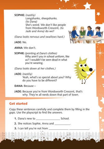 3. So the woodman Hansel and 1. Dana’s new took to _________________ School. into the Brown Wood. 2. She notices Sophie, Anna and ___________. 4. He gave thetell boy and not girl from some______________to______________. eat. 3. I can you’re